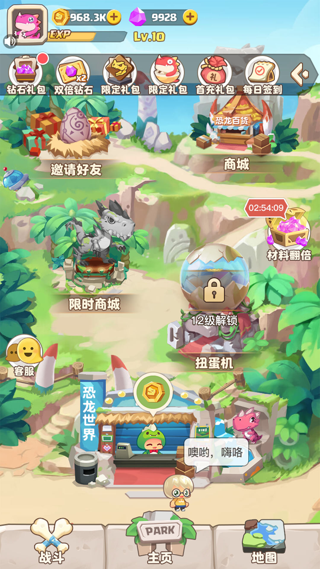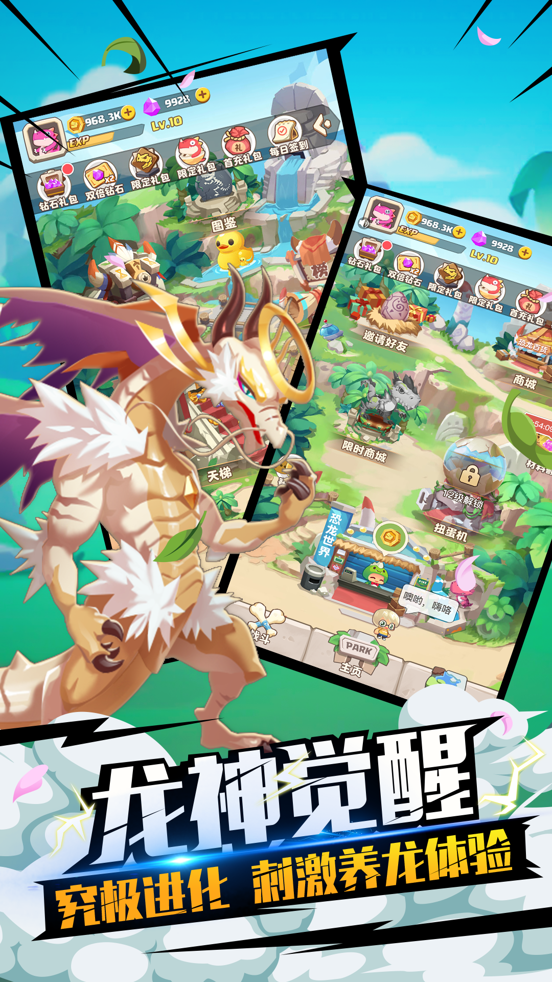 疯狂恐龙世界是一款有趣的模拟经营类游戏,带你穿越侏罗纪闯入疯狂恐龙世界,成为最强的训龙高手, 下载即送大量钻石,开局即可10连抽,龙王夜煞带领你成为本世纪最强恐龙大亨!